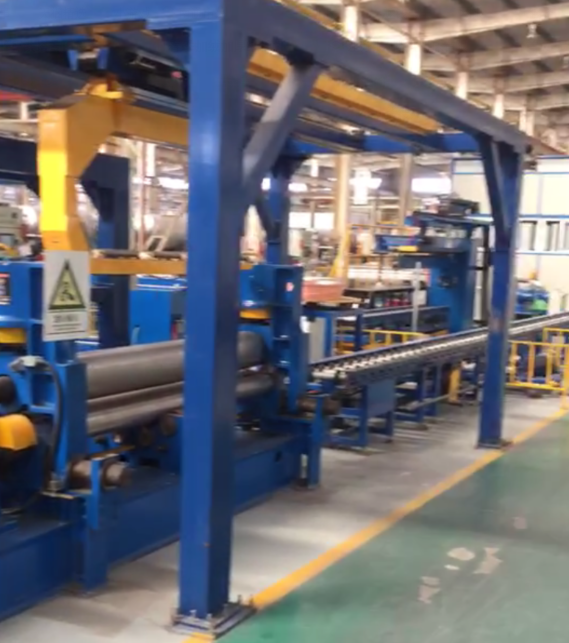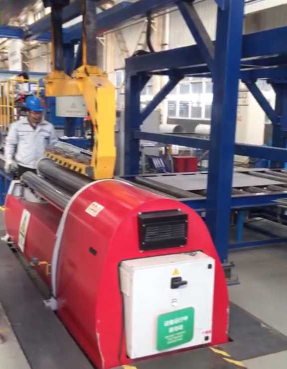 數(shù)控四輥卷板機(jī)結(jié)構(gòu)型式四輥式,上輥為主傳動(dòng),通過(guò)減速機(jī)的輸出齒輪與上輥齒輪嚙合,為卷制板材提供扭矩;下輥?zhàn)鞔怪鄙颠\(yùn)動(dòng),通過(guò)液壓缸內(nèi)的液壓油作用于活塞而獲得,以便夾緊板材,為液壓傳動(dòng);在下輥的兩側(cè)設(shè)有側(cè)輥并沿著機(jī)架導(dǎo)軌作傾運(yùn)動(dòng),通過(guò)絲桿絲母蝸輪蝸桿傳動(dòng);該數(shù)控四輥卷板機(jī)優(yōu)點(diǎn)是板材端部預(yù)彎及卷圓可以在同一臺(tái)設(shè)備上進(jìn)行。江蘇銀利數(shù)控機(jī)床有限公司定期會(huì)為客戶制訂回訪計(jì)劃,客戶回訪中會(huì)對(duì)機(jī)床進(jìn)行全面的精度和性能檢測(cè),發(fā)現(xiàn)問(wèn)題立即解決,并進(jìn)行必要的設(shè)備維護(hù)和保養(yǎng),消除故障隱患。雖然江蘇銀利數(shù)控機(jī)床的四輥卷板機(jī)的故障率很低,但是江蘇銀利數(shù)控機(jī)床有限公司銷售人員也馬虎不得,竭盡所能的為客戶提供完美的售后服務(wù)體驗(yàn),如圖:數(shù)控四輥全自動(dòng)生產(chǎn)線回訪